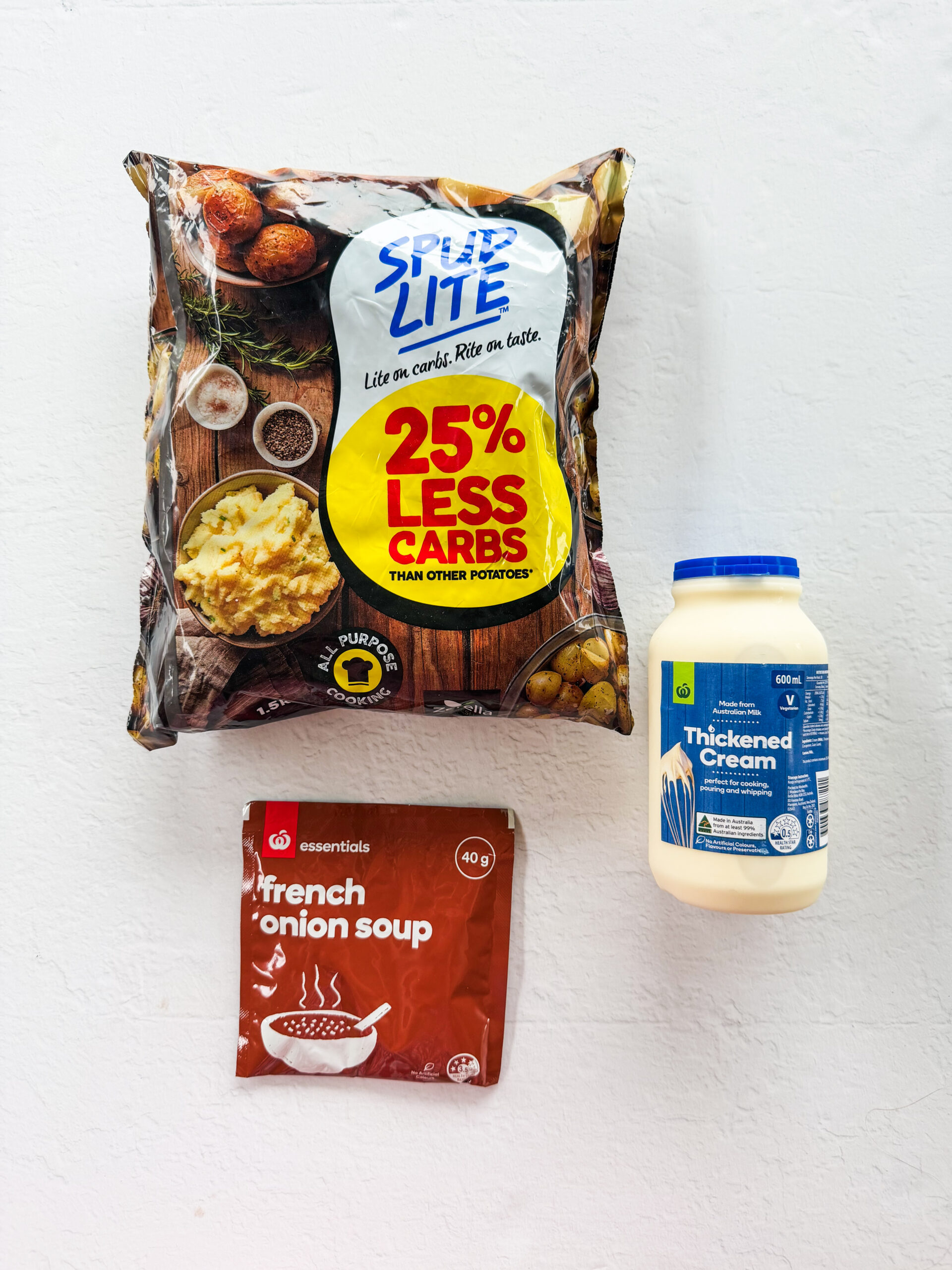 This French onion potato bake is creamy, comforting, ridiculously easy, and now firmly on high rotation in our house. Just three ingredients, no fuss, and everyone actually eats it.