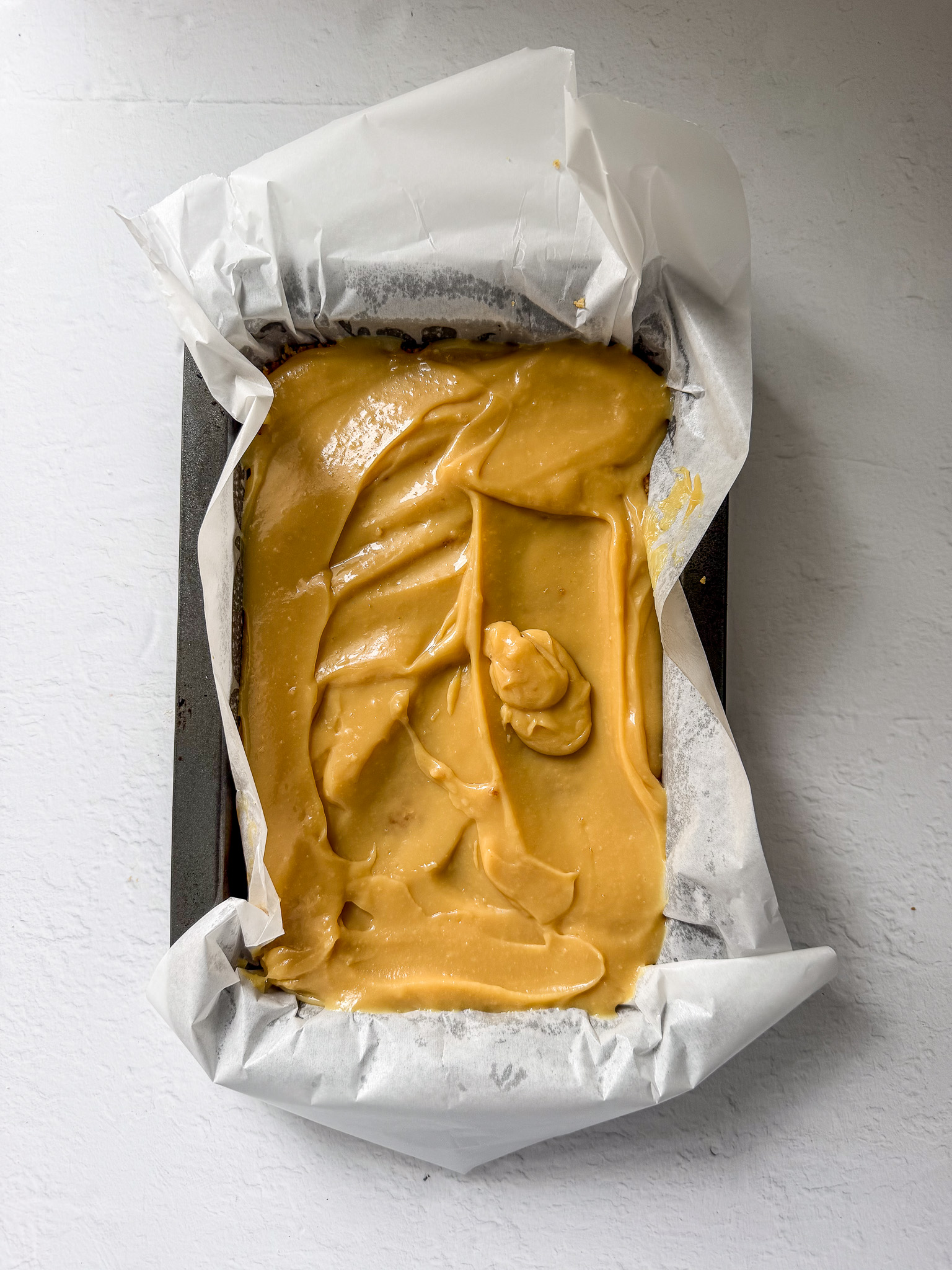 Press the mixture firmly into the base of your lined tin, making sure it’s nice and even. Pop it into the fridge to set slightly while you prepare the caramel.