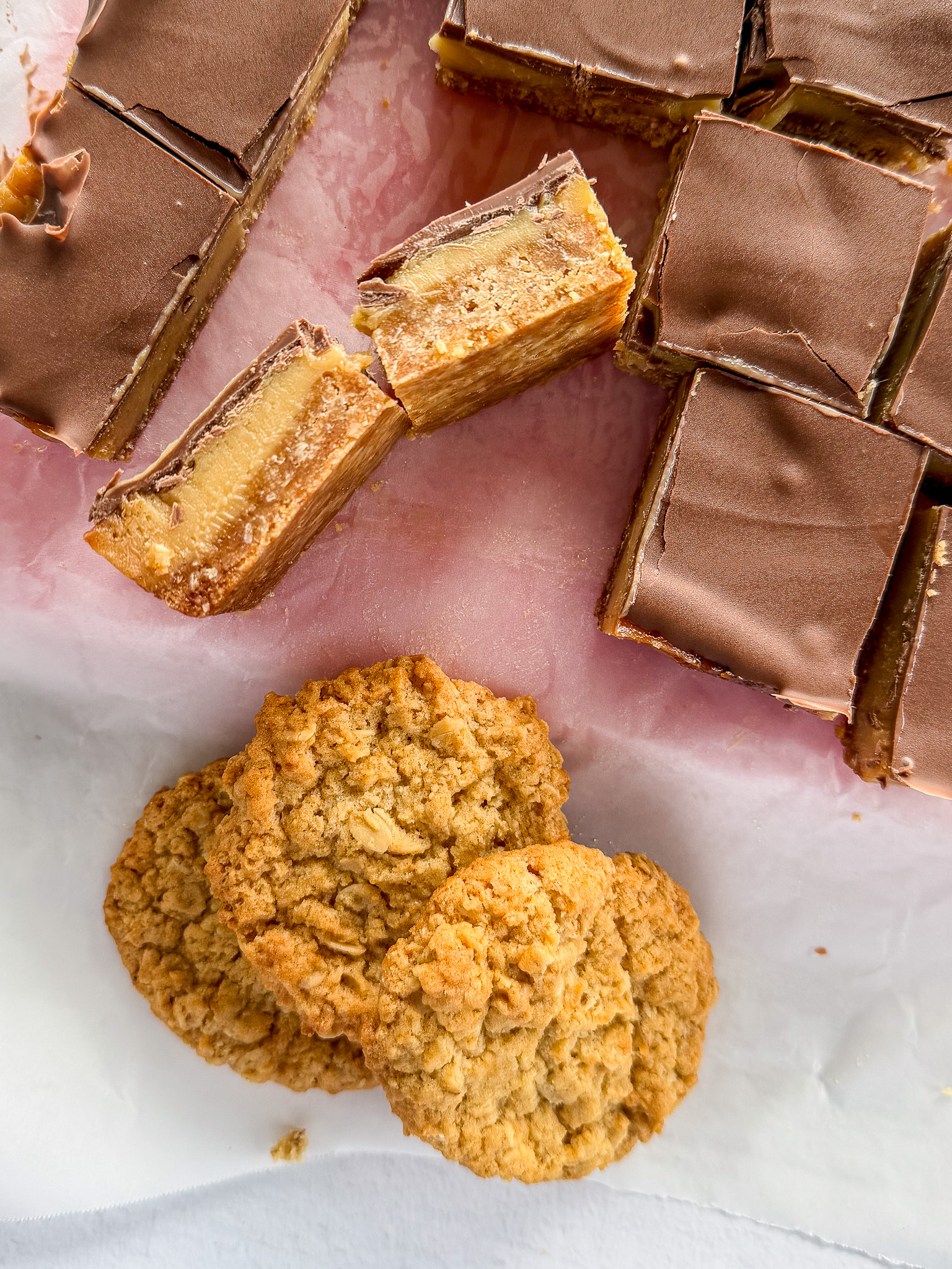 This Anzac caramel slice is one of those no-fuss bakes that feels a little bit fancy, but is actually really easy to throw together. The base is chewy and buttery, the caramel is rich and gooey, and the chocolate layer on top just ties it all together.