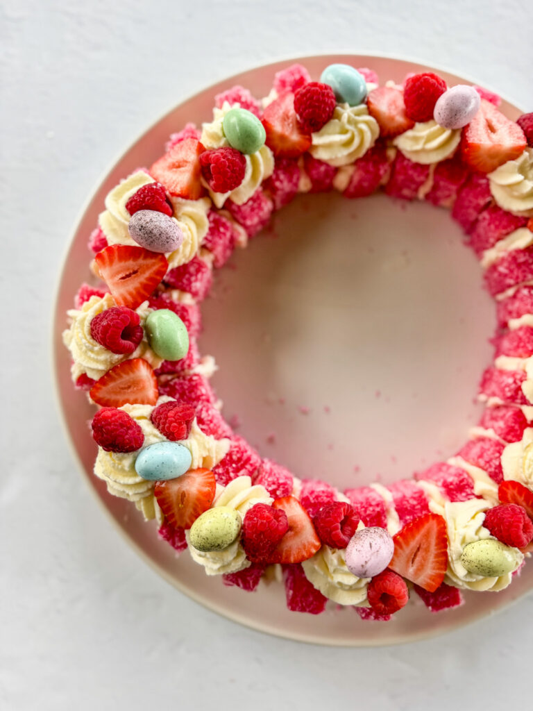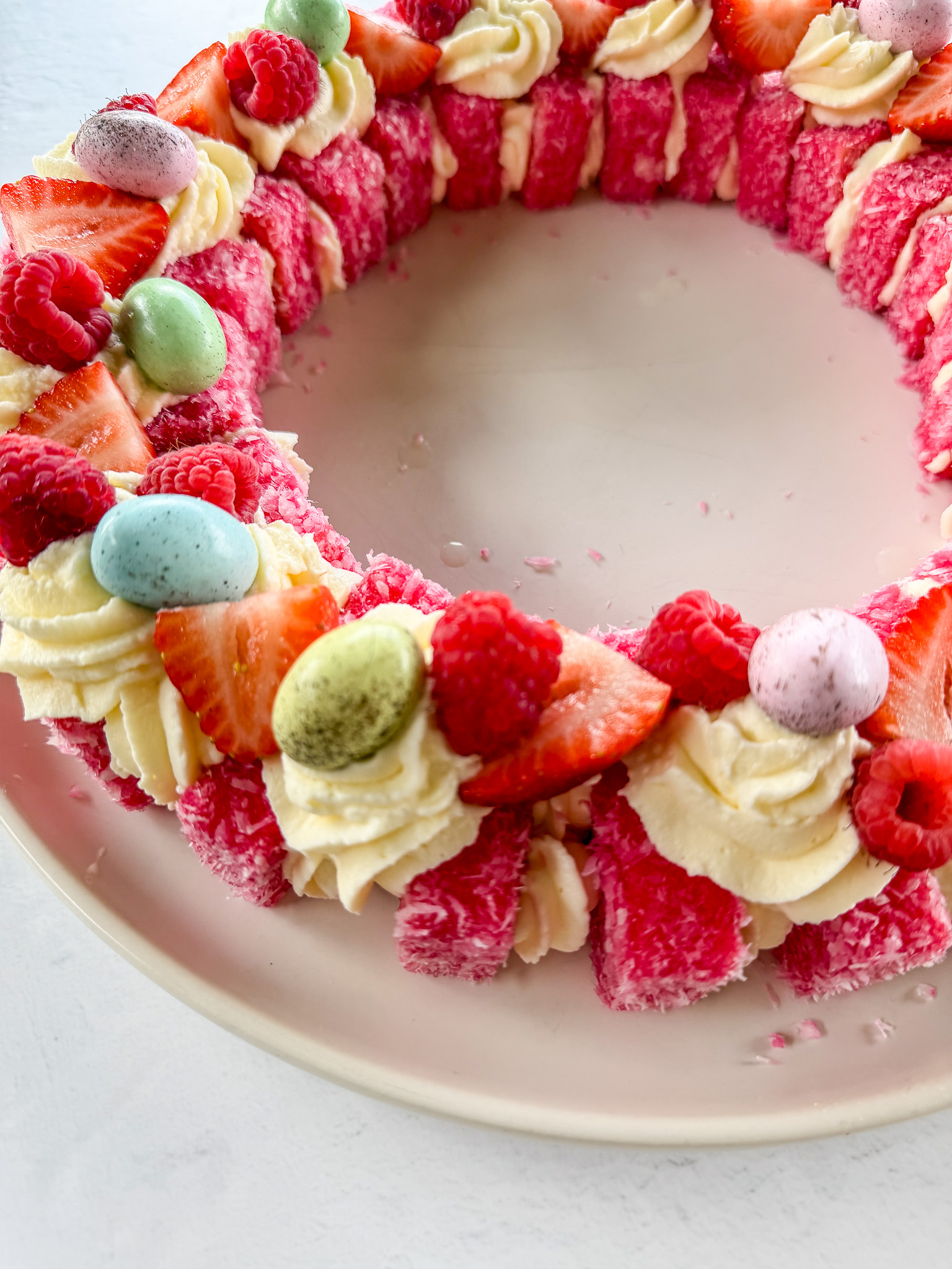 If you’re looking for a show-stopping dessert (I made this one for Easter) that takes almost no effort, this lamington wreath might just become your new go-to.