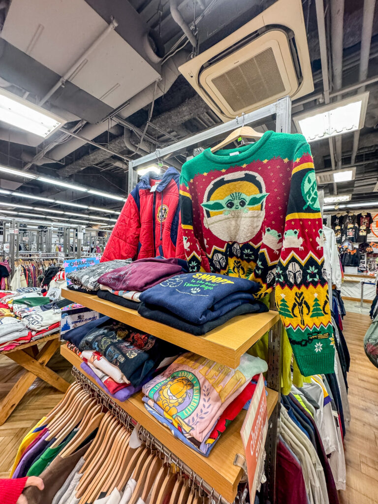 Japanese op-shops are not your average dig-through-bins-and-hope-for-the-best experience. Everything is beautifully displayed and easy to find—whether you’re after denim, dresses, bags, or vintage Disney sweatshirts. It’s like walking into someone’s (very stylish) wardrobe, and everything’s for sale.