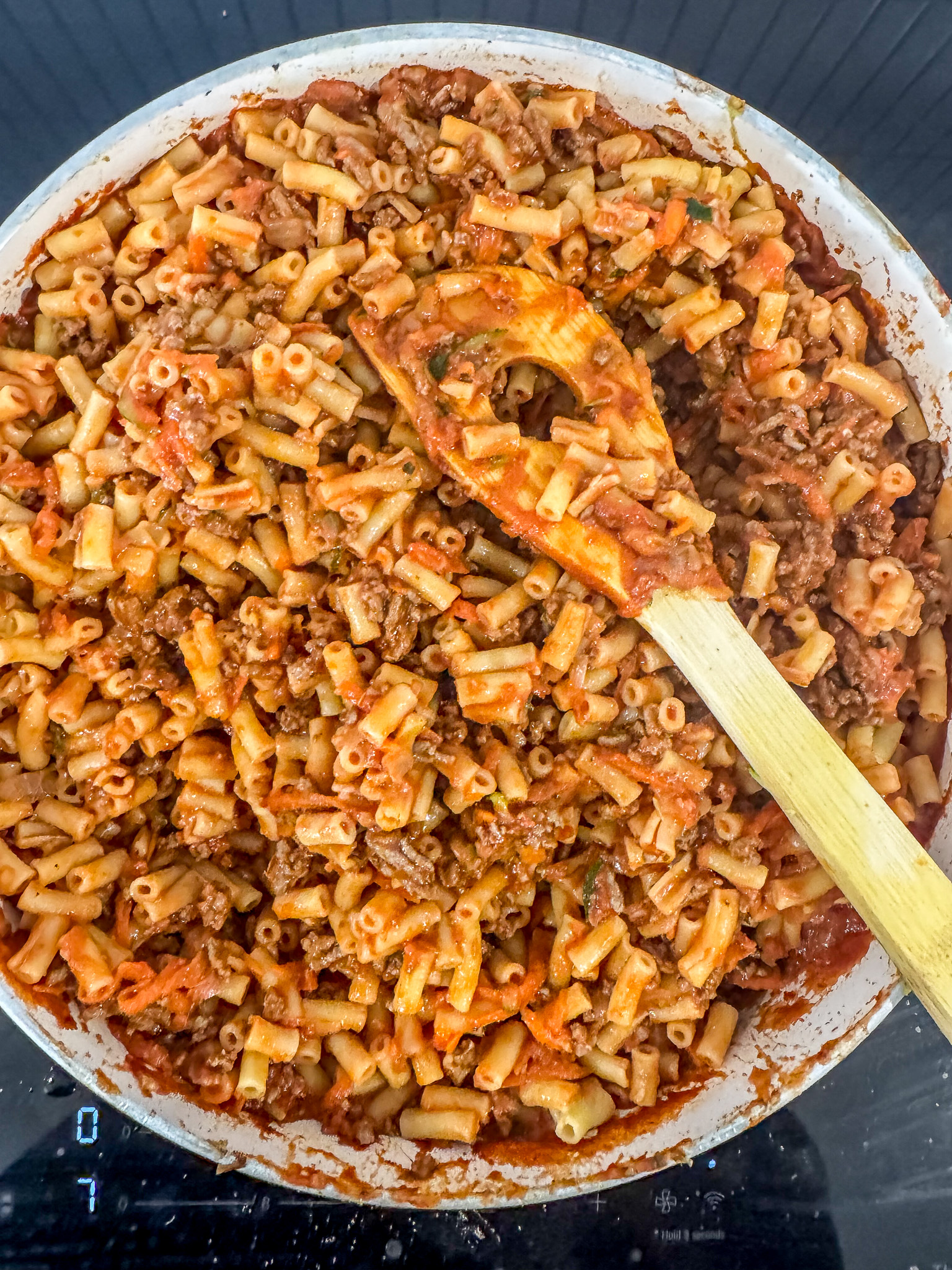 - Add the cooked pasta to the beef mixture, stir to combine, and transfer to a large baking dish.